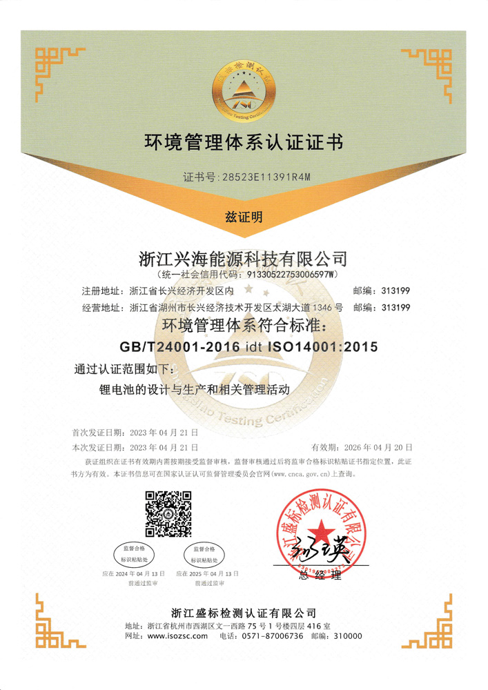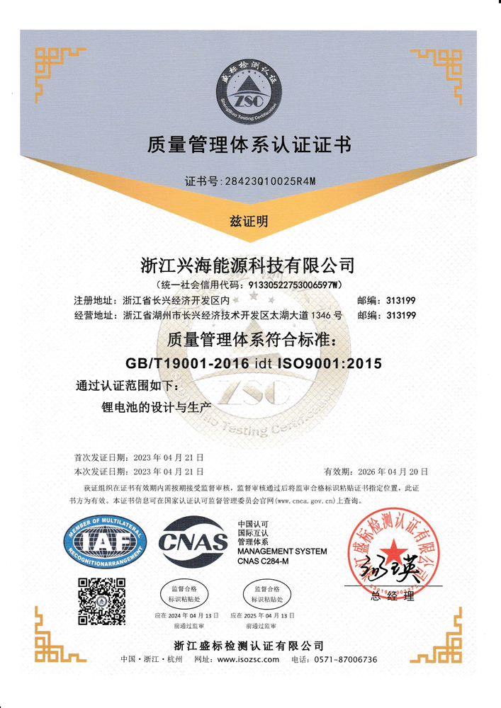 浙江興海能源科技有限公司成立于2003年,坐落在浙江省長興縣國家級經濟技術開發區,為國家級高新技術企業、浙江省專利示范企業。公司專注于鋰離子電池的研發、生產、銷售和服務,擁有自主核心專利,具有電芯和電池組的規模化生產能力,并已成長為專業的綜合能源解決方案提供商。